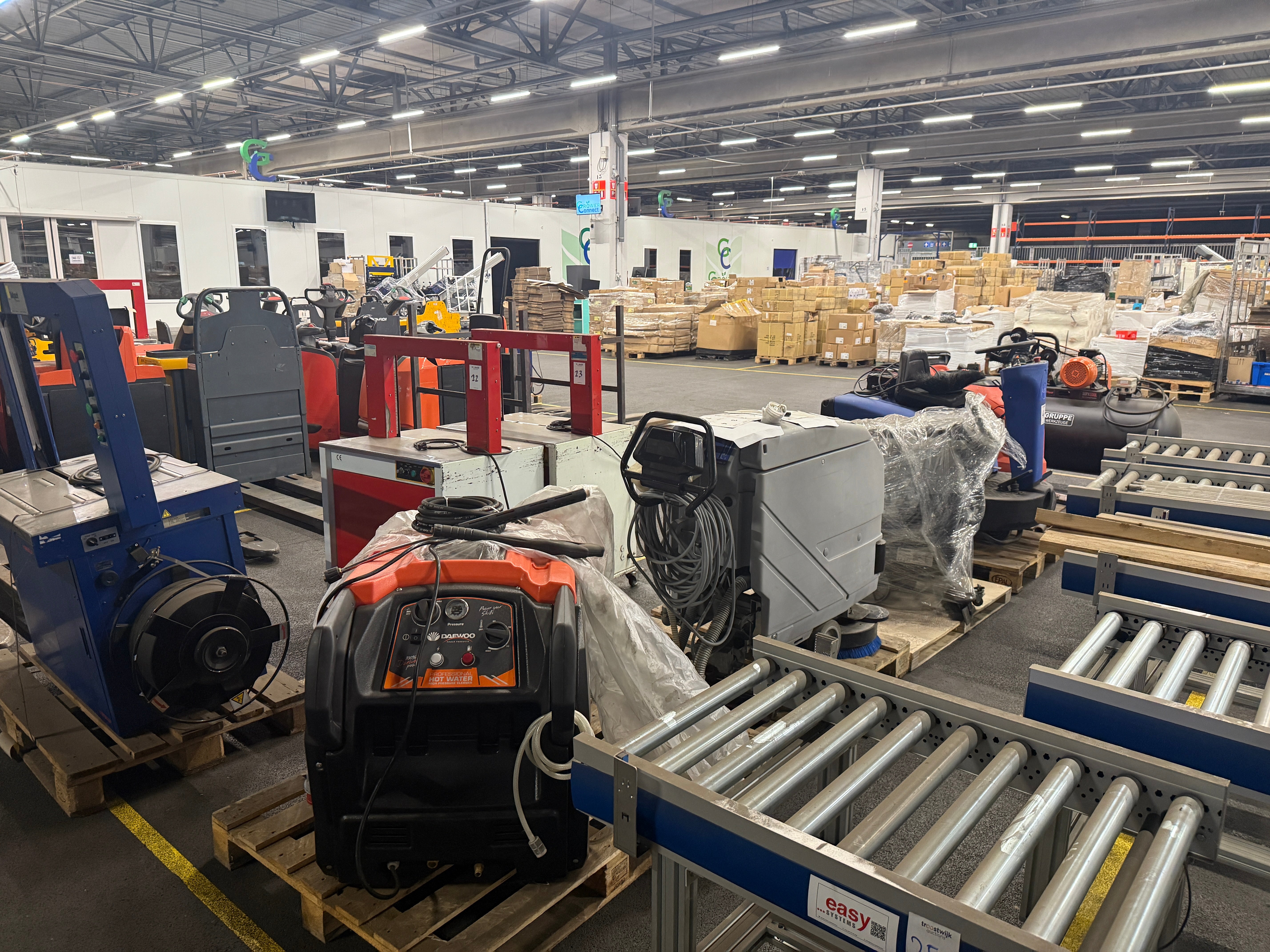 Het faillissement zelf laat goed zien hoe divers de inboedel is. Van grote precoolers, gebruikt om bloemen in korte tijd terug te koelen, tot een palletdoos vol K3-shirtjes. Daarnaast komen we een breed scala aan producten tegen, zoals labelprinters, intern transportmaterieel (waaronder elektrische orderpickers en palletwagens), gereedschapskisten, automatische insealmachines, bureaus en tafels, en zelfs een antieke bar. Een veelzijdig traject dat perfect laat zien waar Tickert voor staat: overzicht creëren, snelheid maken en waarde halen uit elk faillissement.